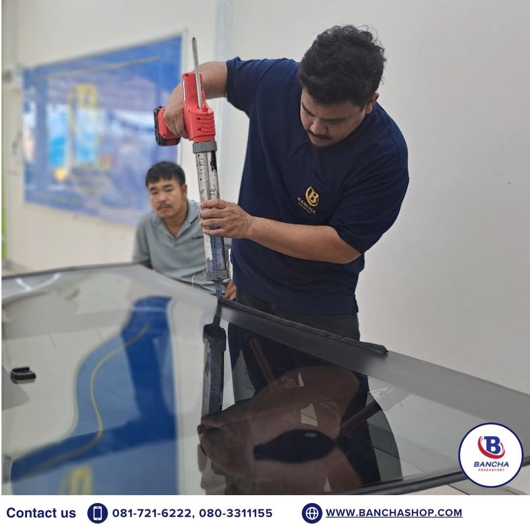 ในการติดตั้งกระจกรถยนต์ใหม่ ทางร้านเลือกใช้ SikaTack® GO กาวคุณภาพสูงระดับสากล ที่ได้รับการยอมรับจากผู้ผลิตรถยนต์ทั่วโลก มั่นใจได้ในความแข็งแรง การยึดเกาะที่ทนทาน และความปลอดภัยในทุกการใช้งาน